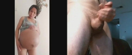 رجل رعشة قبالة ديك أ لزوجة الأب الحامل قبل كاميرا الويب